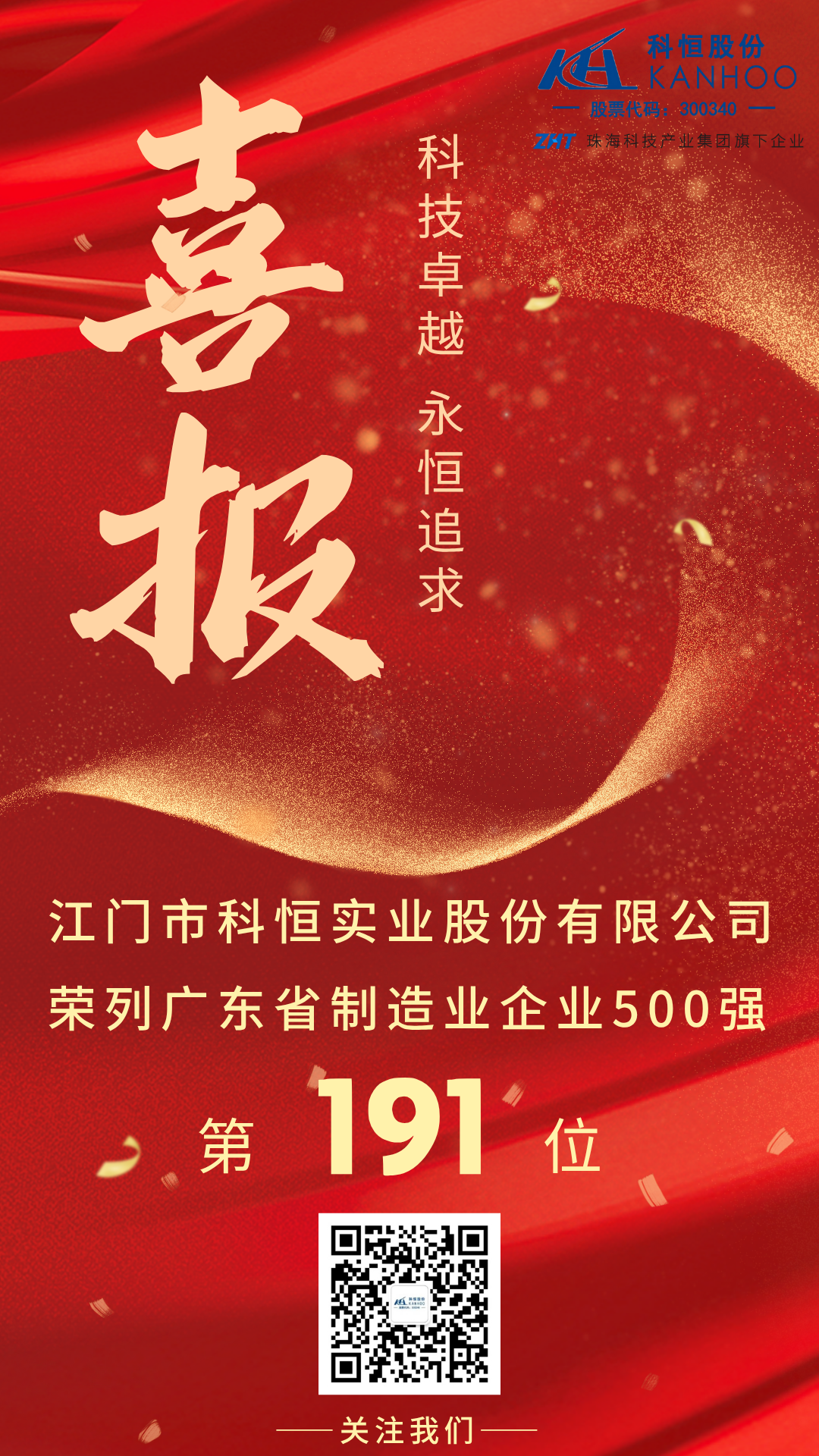 祝賀!江門市科恒實業(yè)股份有限公司入選廣東省制造業(yè)500強